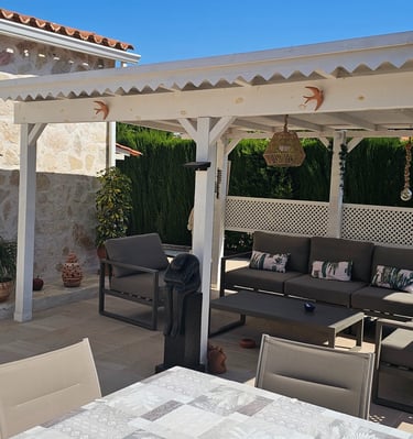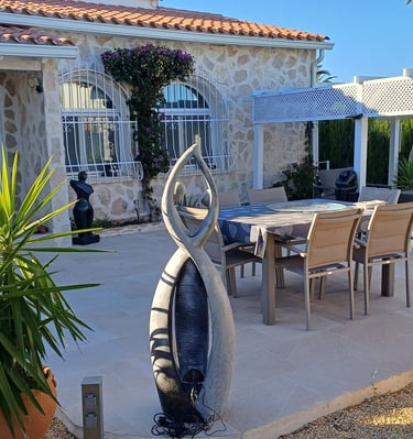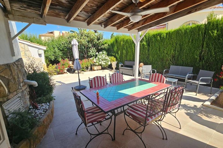 Vous disposez de l'ensemble des espaces extérieurs, piscine indépendante, douche solaire, jardins, salons et terrasses, terrain de pétanque, trampoline, plancha et barbecue.